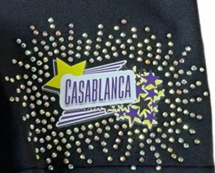 Leggings with Casablanca logo surrounded by a rhinestone burst